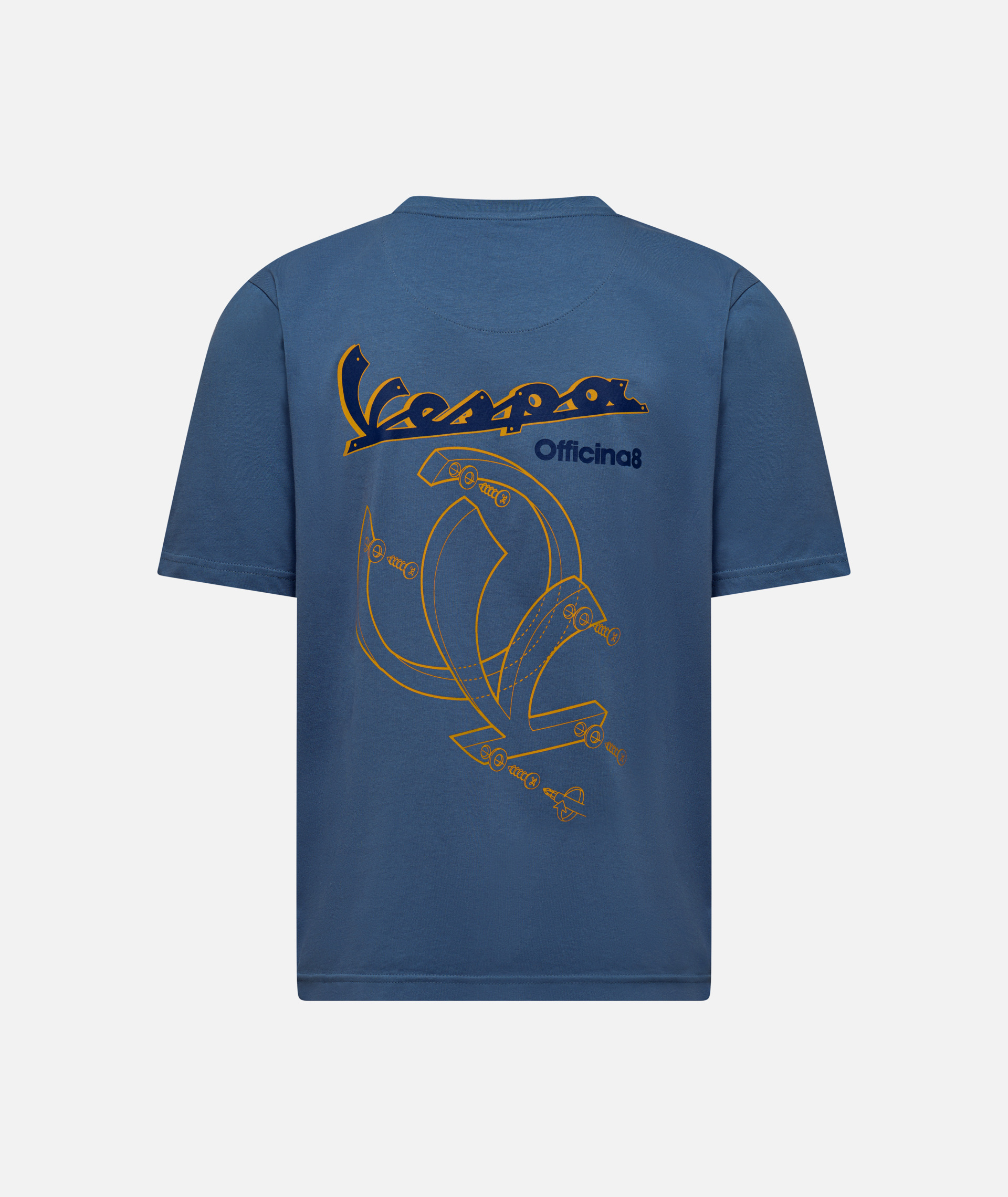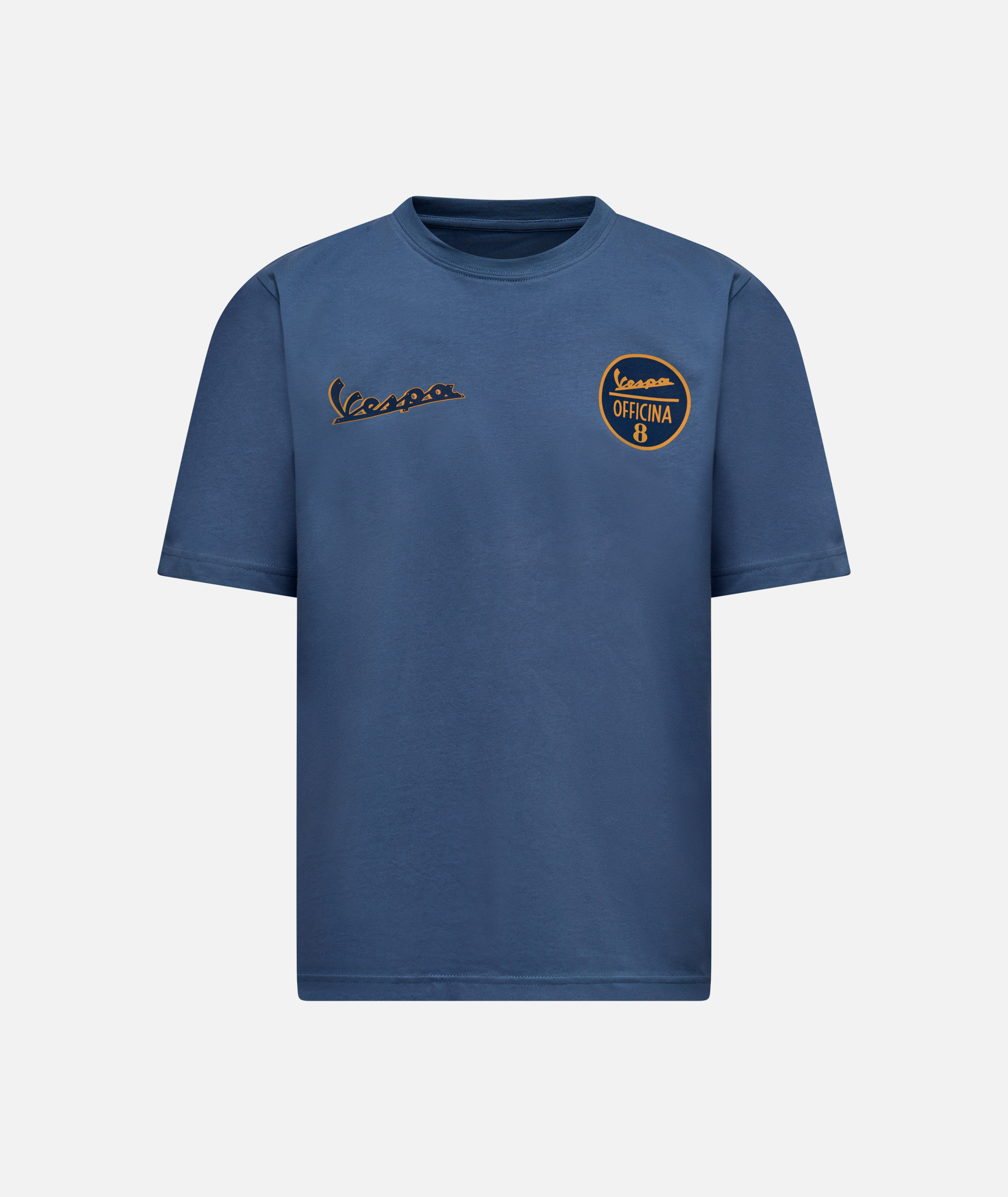 The Vespa Officina 8 logo is a striking feature of this 100% cotton T-shirt, which also features an exclusive printed inner label.