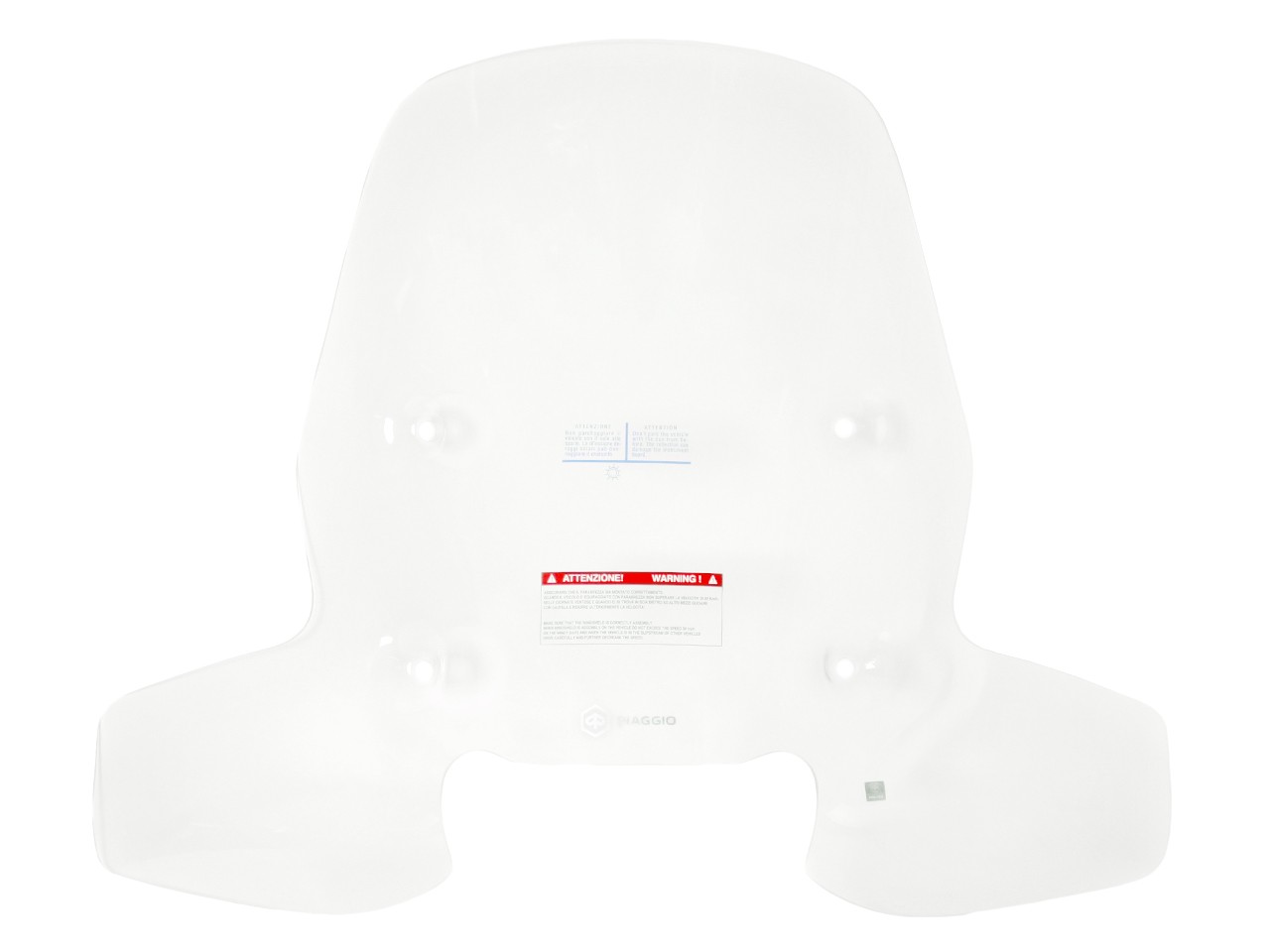 Windshield made of high quality impact-resistant methacrylate. Shatterproof, 4 mm. Tested and homologated at the Piaggio R&D Center (no ABE required).