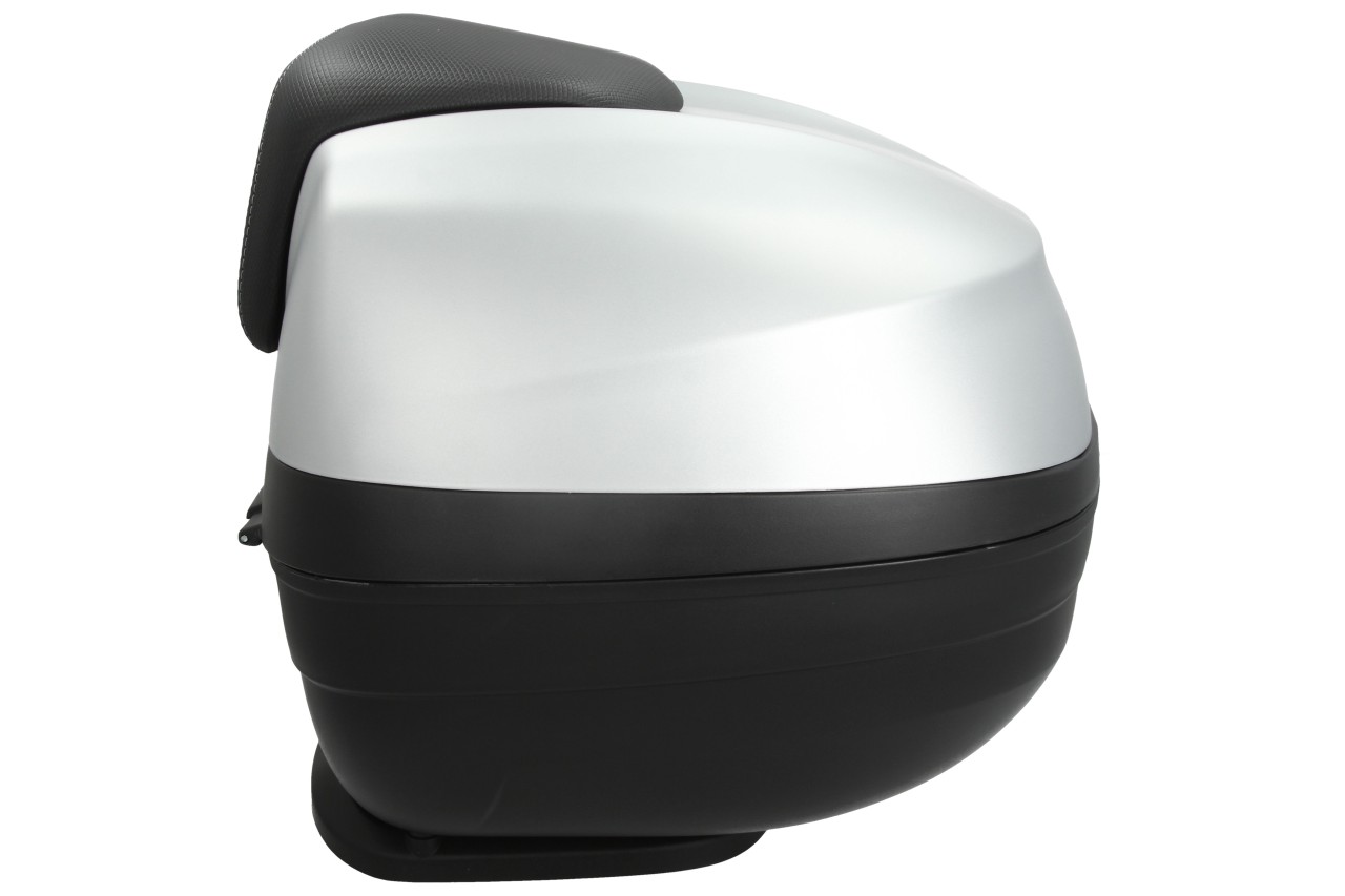 Top Case with quick mounting system. Provides space for a modular helmet. Top case painted in vehicle color, with comfort back cushion for the passenger, in the same material and finish of the seat.