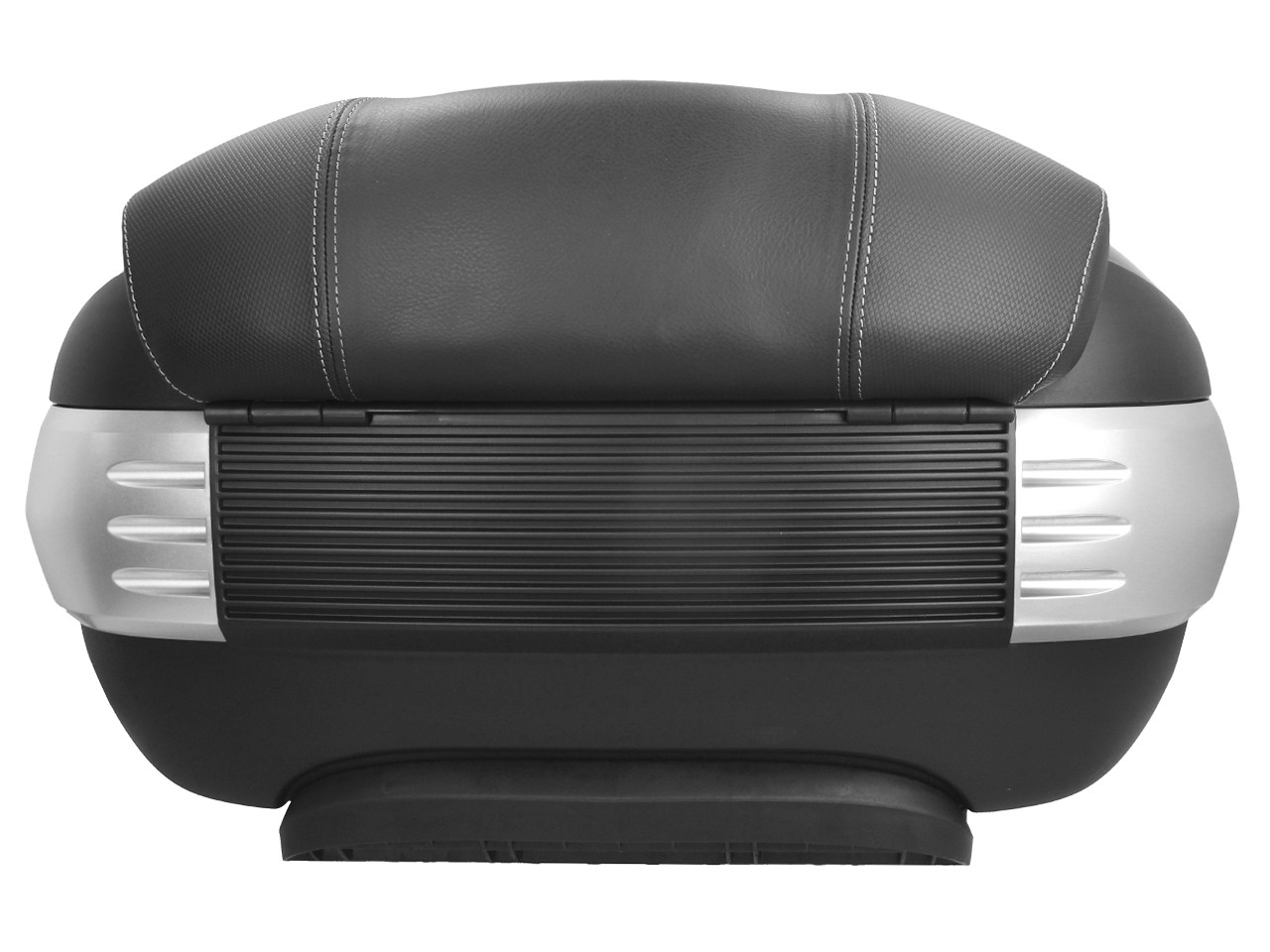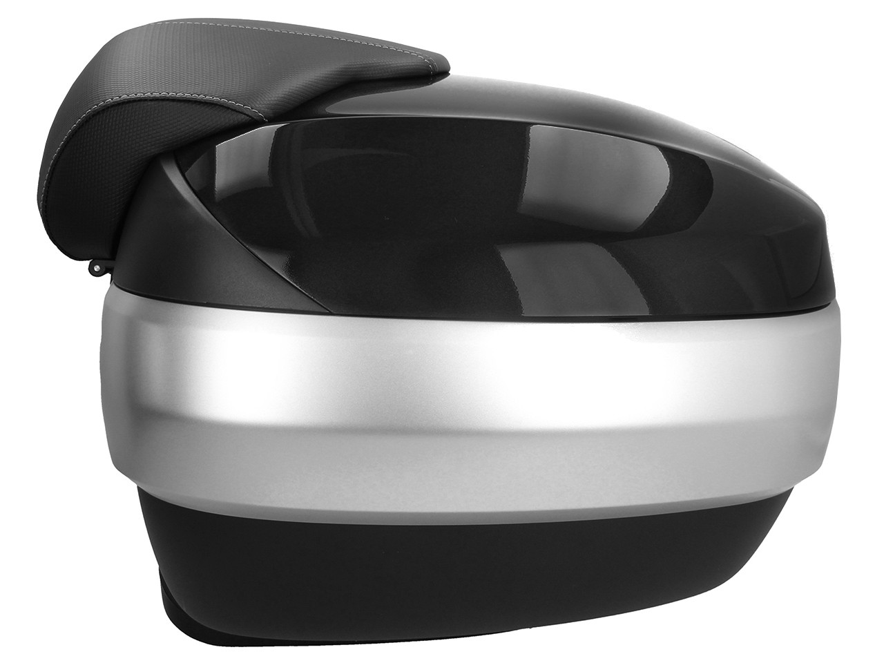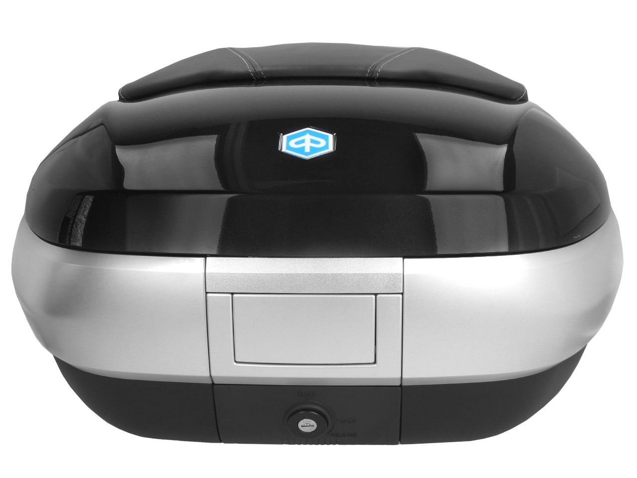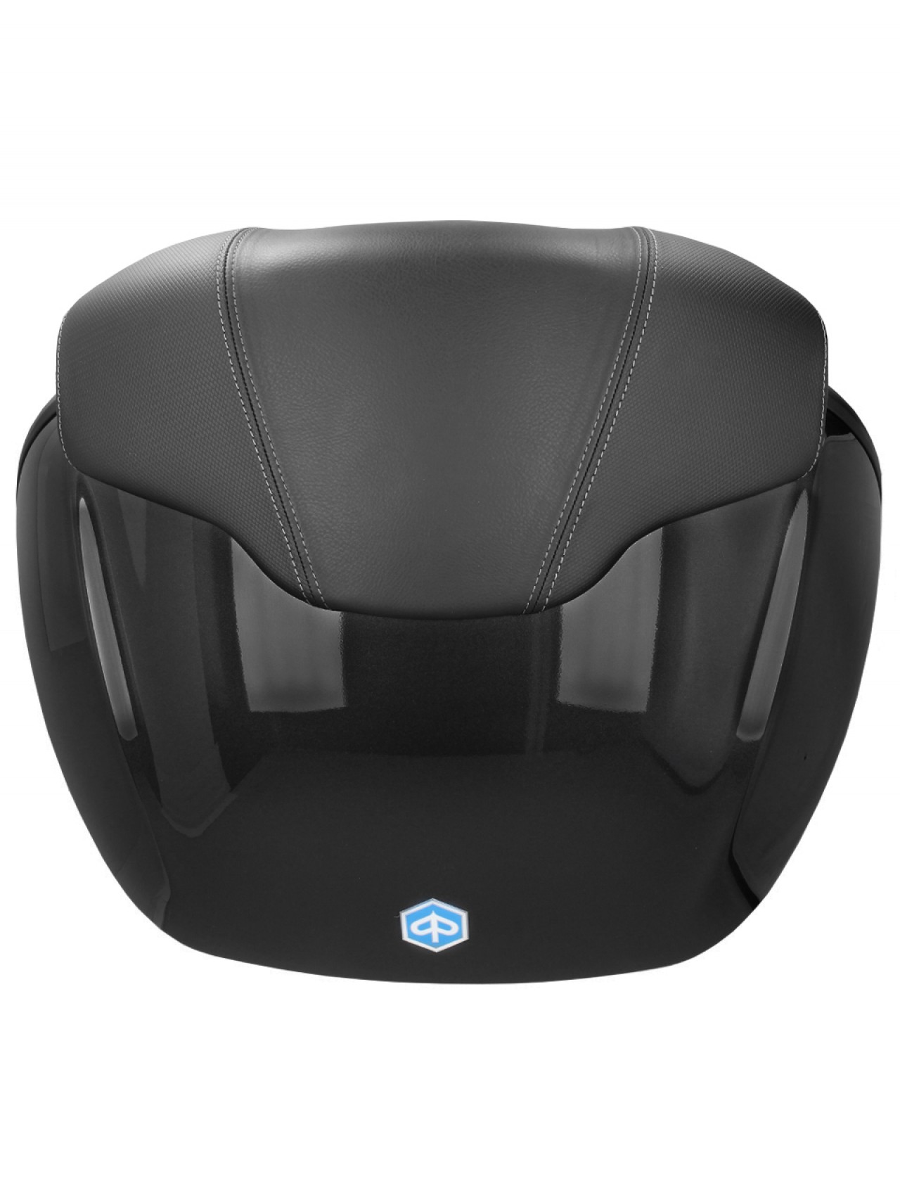 Spacious, with quick mounting system. Provides space for 2 modular helmets. Top shell painted in vehicle color, with comfort back pad for the passenger, in the same material and finish of the seat. Document pocket inside and elastic straps to stabilize the luggage.