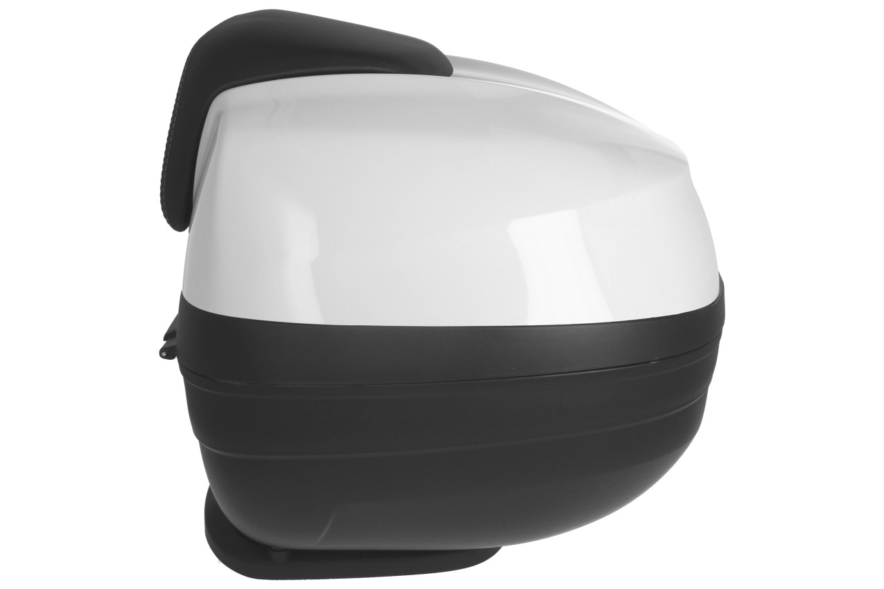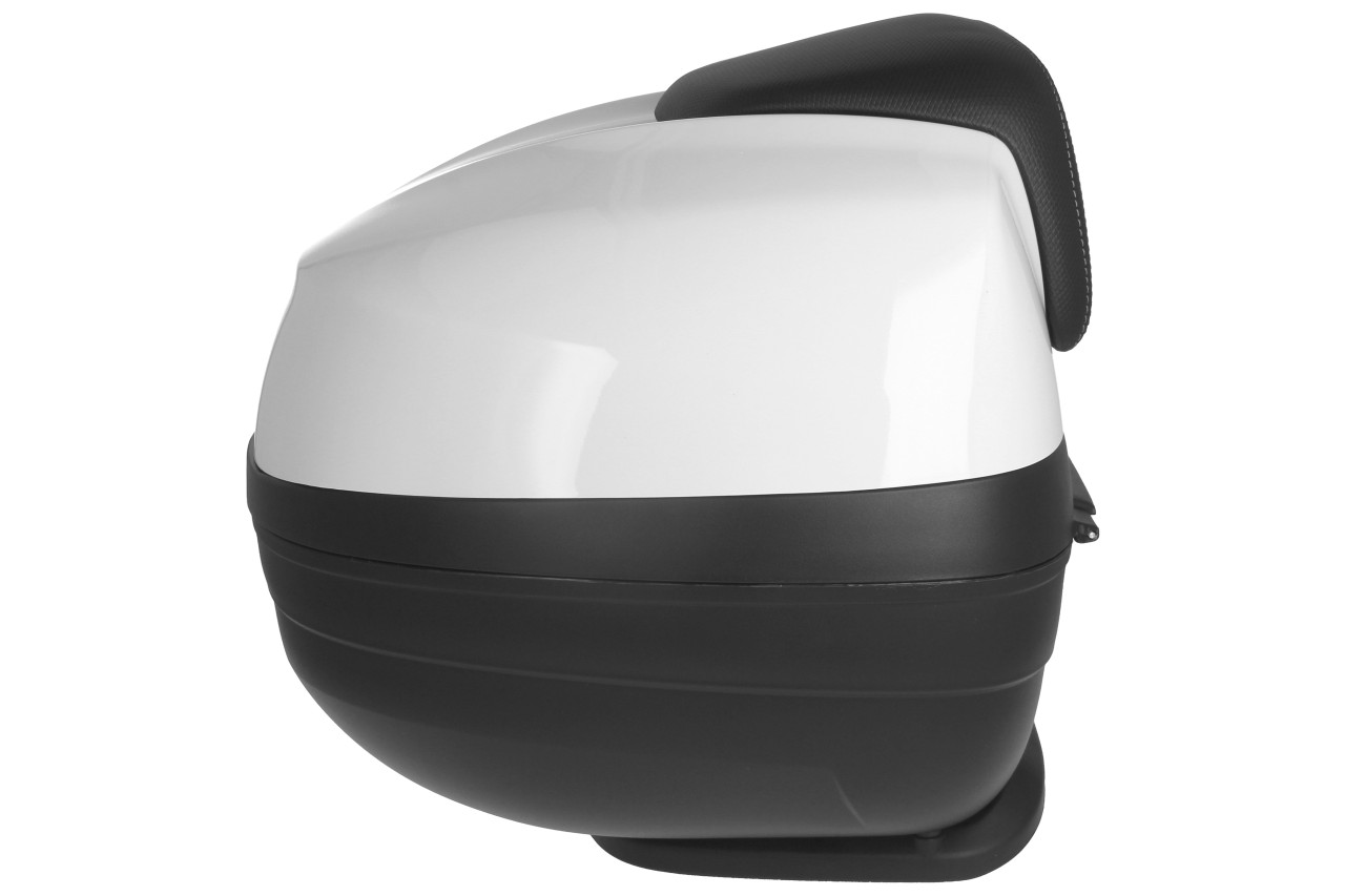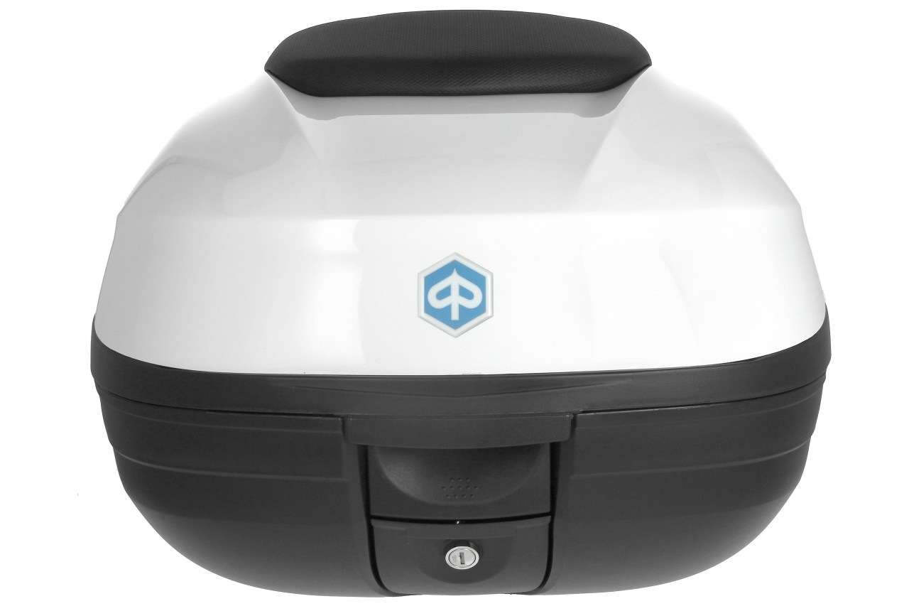 Top Case with quick mounting system. Provides space for a modular helmet. Top case painted in vehicle color, with comfort back cushion for the passenger, in the same material and finish of the seat.