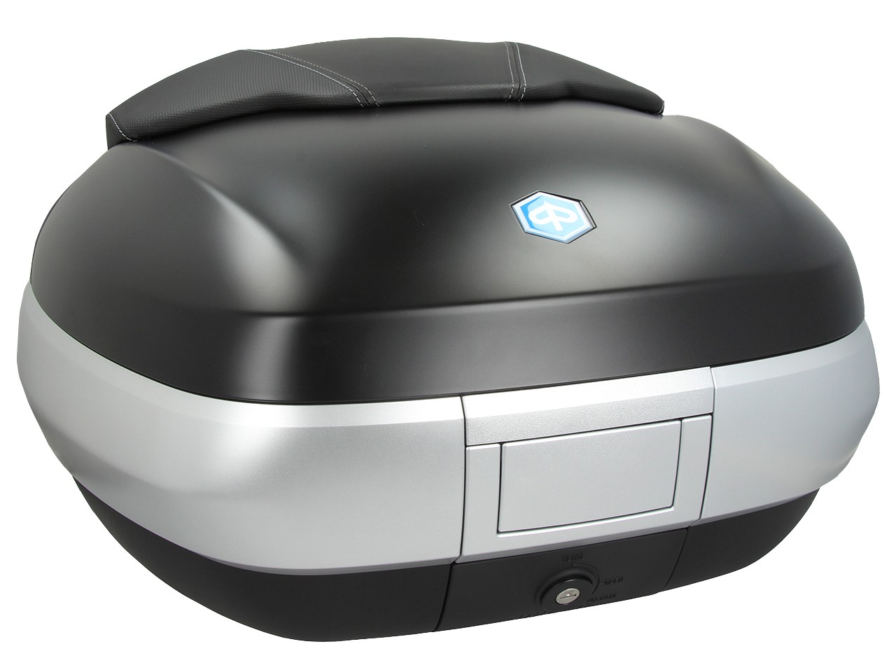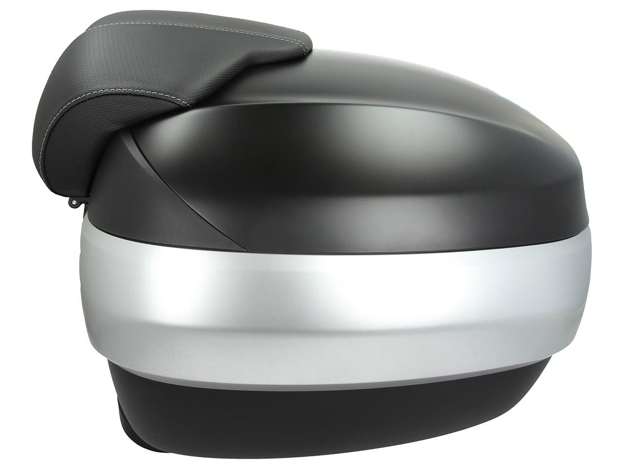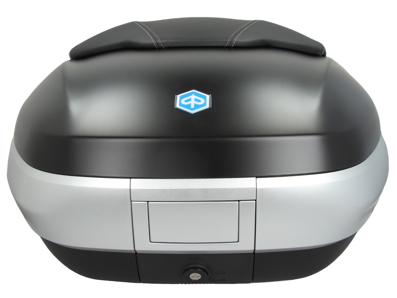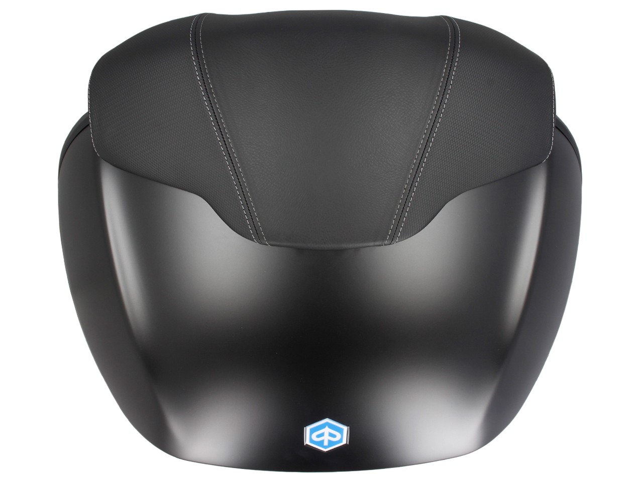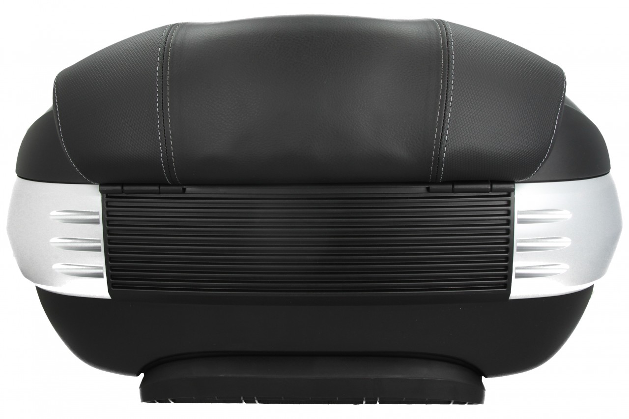 Spacious, with quick mounting system. Provides space for 2 modular helmets. Top shell painted in vehicle color, with comfort back pad for the passenger, in the same material and finish of the seat. Document pocket inside and elastic straps to stabilize the luggage.